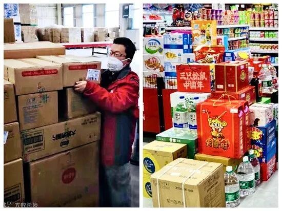 新通路武汉仓工作人员整理出库,帮助武汉门店线上运营供货