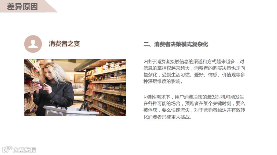 消费者决策模式复杂化。由于消费者接触信息的渠道和方式过多,真假信息很难判断,这时候提供一些简洁的选择很有必要。少就是多。