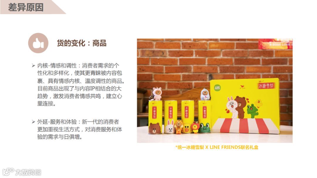 在商品本身没有成为IP之前,做跨界的IP联合会很有效。这款冰糖雪梨,它产品没有变化,但包装设计了联名款,喜欢周边的人就会去买。有时候,所见即所得。但对传统的企业来讲,电商因为运费等因素,占比不是特别高,所以线上和线下相结合是十分有必要的。