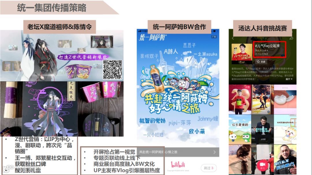 这两个策略在业绩转折上做出了巨大的贡献,我们也做出了些新的尝试,诸如:老坛&魔道祖师&陈情令以及统一阿萨姆BW合作。