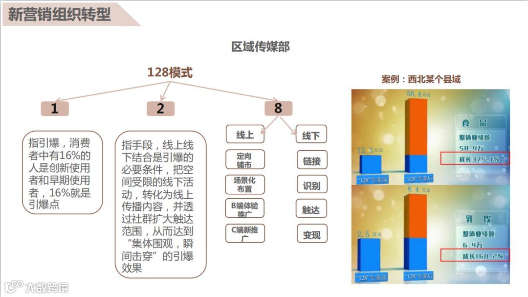 在区域,128模式是比较快速的一个模式。也感谢刘老师全队在给我们品牌咨询的时候提供的好模式。主要通过社群运营,在一些弱势区域和强势区域运用128模式。