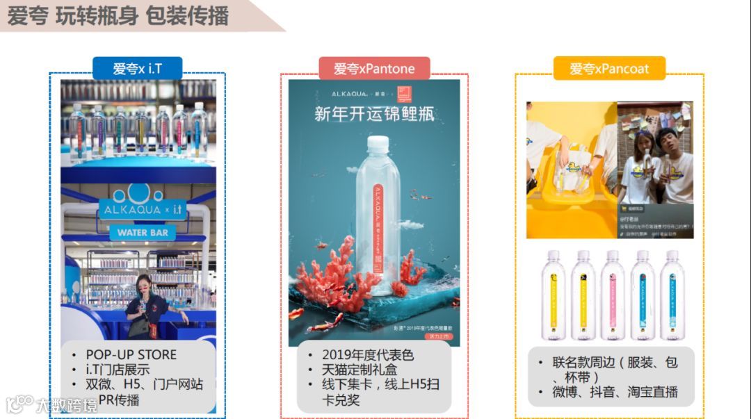 这是品牌营销略负面的一个案例。4元的爱夸水在上海卖得还挺好,做了许多关于它的跨界营销活动比如出联名款周边。每年推出pantone年度色等。