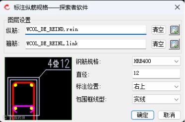 新增功能,适用于详图表格和截面注写形式的柱详图。点击“拾取”识别柱详图,选择完成后返回界面,进行参数化编辑修改,点击“应用”,程序根据修改后的参数对原图进行重绘。