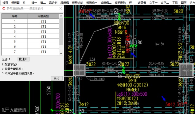 (1)增加查看异常选筋结果功能,可通过列表分类统计、定位查看显红的、异常的选筋结果。