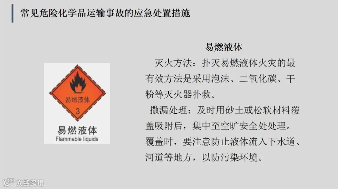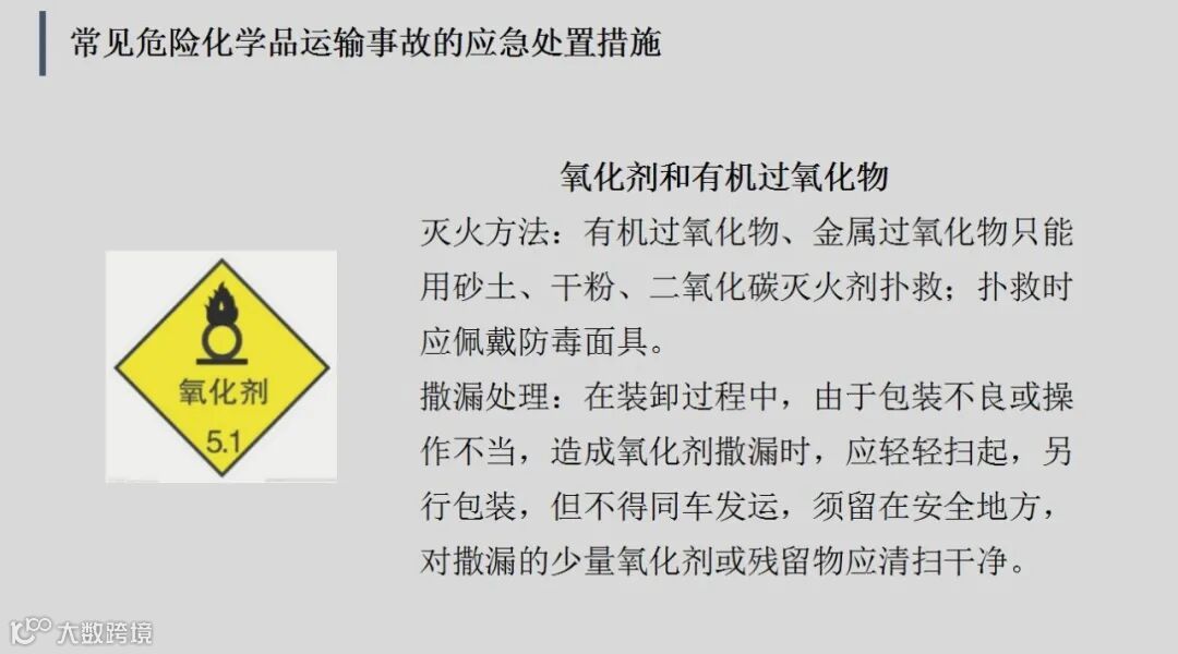常见危险化学品运输事故的应急处置措施: