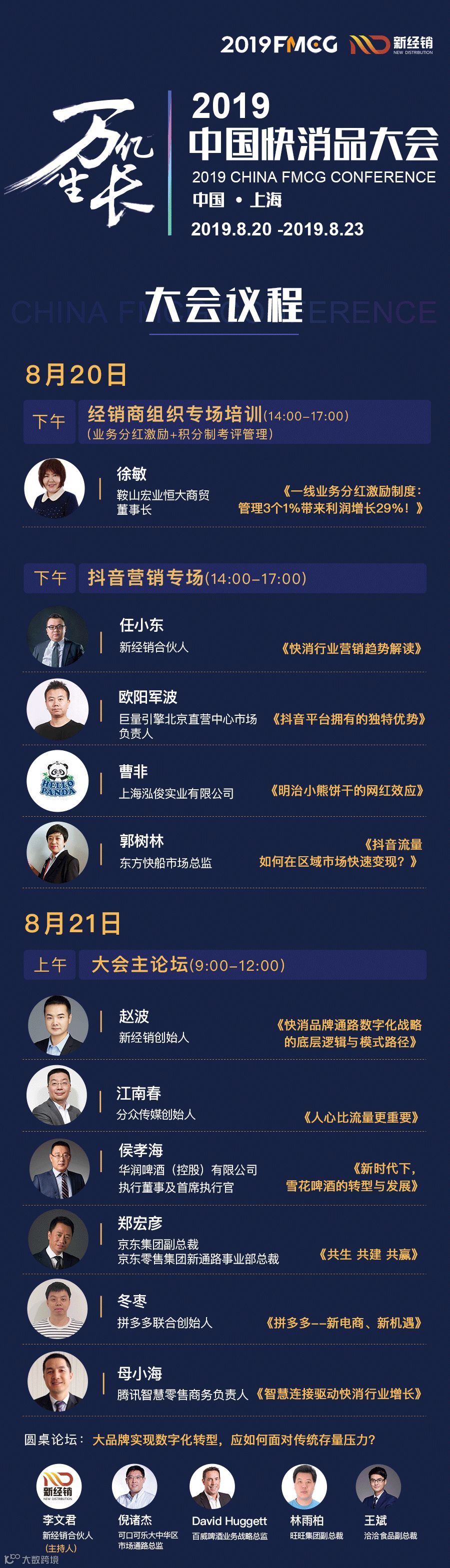 PS:2019年8月20日-23日,一年一度由新经销举办的快消品行业盛会「万亿生长·2019中国快消品大会」即将在上海震撼开启!100余位重量级分享嘉宾,3000+快消行业从业人员,18场重磅议题。本届大会以“万亿生长”为主题、“创新产品、创新渠道及创新营销”为话题,发掘新时代下支撑企业未来十年快速增长的新模式,新方法,新趋势。