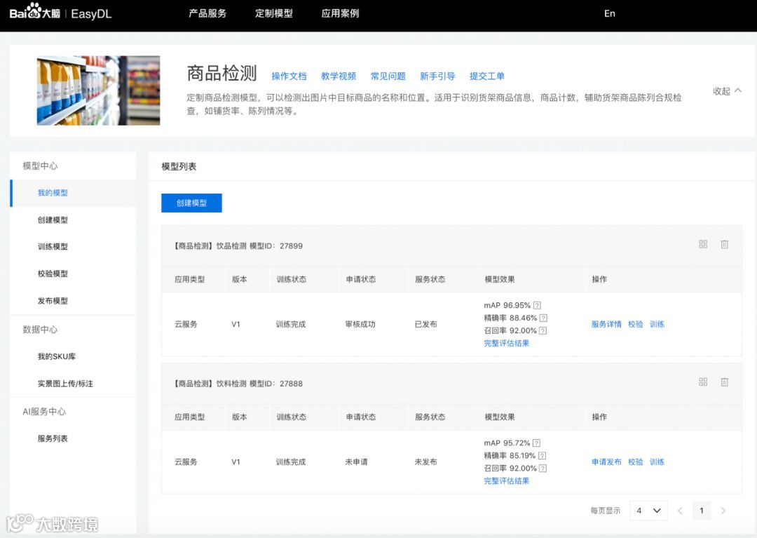 此外,针对目前困扰大部分品牌商的终端陈列检查、费用核销等问题,百度大脑还推出了国内首个专为快消行业定制的AI模型训练平台—EasyDL商品检测专业版系统,帮助合作伙伴零算法基础训练业务定制模型,帮助快消企业做到门店陈列商品的精准识别,进而优化人力、物力成本。