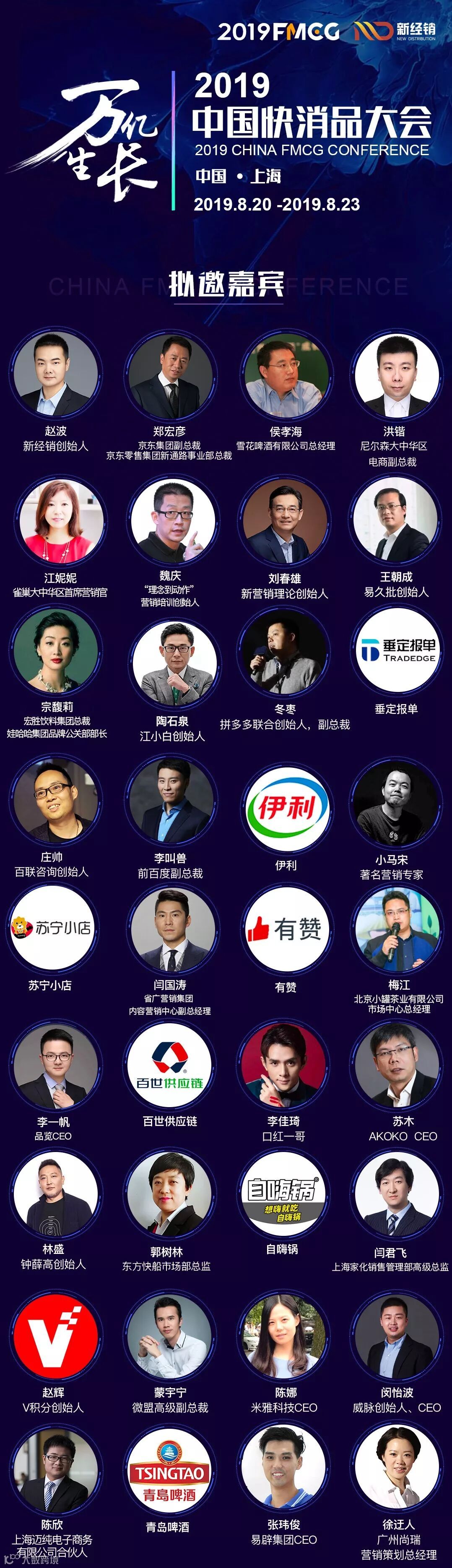 PS:2019年8月20日-23日,一年一度由新经销举办的快消品行业盛会「万亿生长·2019中国快消品大会」即将在上海震撼开启!100余位重量级分享嘉宾,4000+快消行业从业人员,18场重磅议题。本届大会以“万亿生长”为主题、“创新产品、创新渠道及创新营销”为话题,发掘新时代下支撑企业未来十年快速增长的新模式,新方法,新趋势。