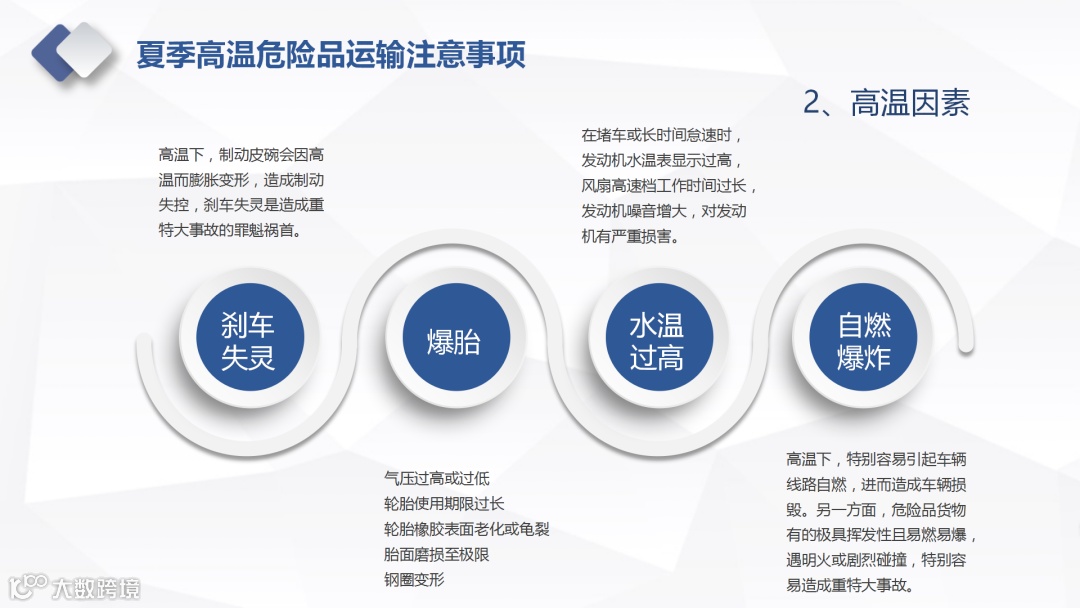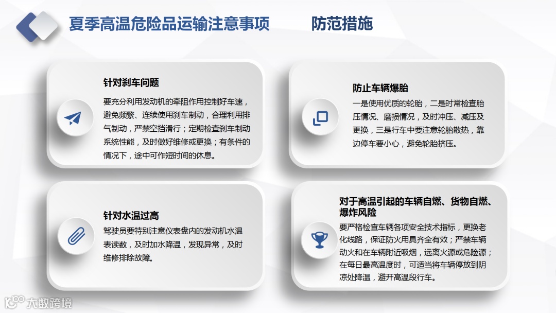 针对刹车问题、防止车辆爆胎、针对水温过高、对于高温引起的车辆自燃、货物自燃、爆炸风险都应引起重视!