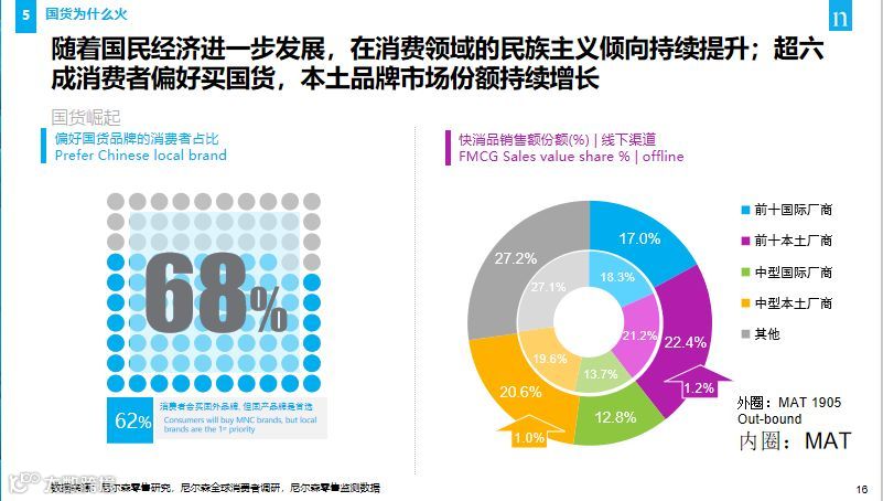第五个是消费者越来越喜欢自己国家里的品牌,尼尔森最新发的报告发现,在中国,消费者越来越喜欢自己国家里的品牌,这是一个非常有趣的现象。