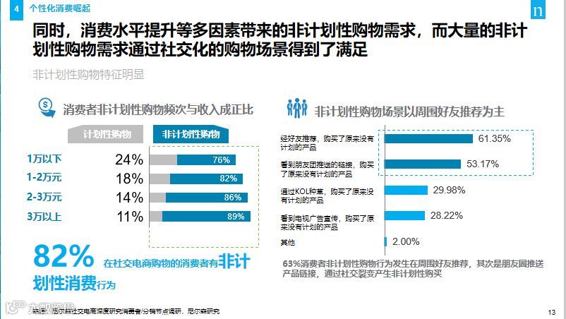 第二个问题就是计划性和非计划性的问题,非计划性购物的特征在中国消费人群里面比较明显,这样的情况在于收入在增长,所以你可以看到社交电商崛起的原因之一就是大家在做很多非计划的购物,比如朋友推荐的时候。