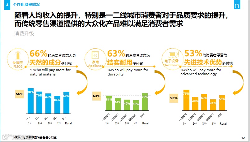 个性化的消费需求越来越大。第一个你可以看到在整个中国,因为中国非常大,所以每个区域之间的消费者差异非常大。为什么乡村的消费者对于家用电器的结实耐用非常关心,这个东西如果坏了,维修是个非常痛苦的东西,这不像在城市里面打一个电话厂商很快就过来了。