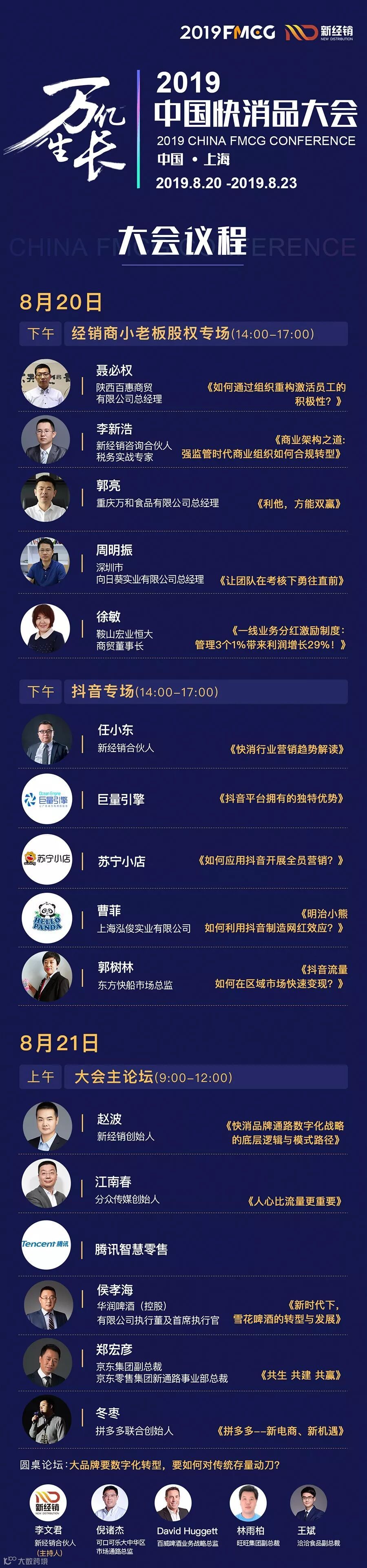 PS:2019年8月20日-23日,一年一度由新经销举办的快消品行业盛会「万亿生长·2019中国快消品大会」即将在上海震撼开启!100余位重量级分享嘉宾,4000+快消行业从业人员,18场重磅议题。本届大会以“万亿生长”为主题、“创新产品、创新渠道及创新营销”为话题,发掘新时代下支撑企业未来十年快速增长的新模式,新方法,新趋势。