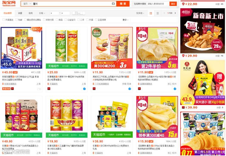 A. 想吃薯片了,在淘宝上搜出100+页看起来都差不多的薯片去筛选。