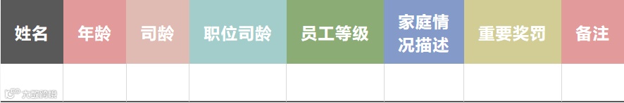 e. 备注要记录特殊事件,比如离职未遂,团队内部亲属关系等。