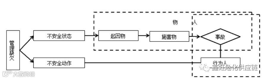 值得注意的是,许多情况下人与物又互为因果。例如有时物的不安全状态诱发了人的不安全行为,而人的不安全行为又促进了物的不安全状态的发展,或者导致新的不安全状态出现。因此,实际的事故并非简单地按照上述的人、物两条轨迹进行,而是呈现非常复杂的因果关系。