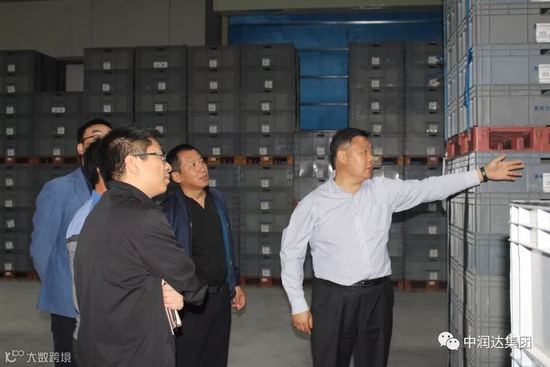 在董事长丁龙奇的带领下一行人来到园区仓储基地进行参观。