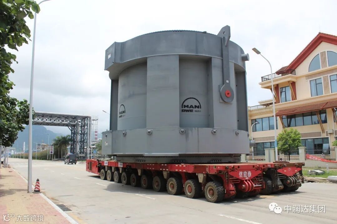 11时30分,轴线车载反应器中心从惠州LNG码头出发,途径滨海大道、滨海十路、石化大道、滨海十二路,于14时30分抵达宇新新材料现场。整段运输里程长达3.3公里,其中1.2公里为政府部门管制路段,即因修路封闭左道所有车辆只能逆行行使。中润达物流提前进行了道路清障工作,惠州大亚湾石化大队派出3辆车进行引路保证运输安全,惠州大亚湾公用事业管理局也派出相关人员到达现场监督检查,在以上单位的帮助和支持下,轴线车载反应器中心安全抵达宇新新材料现场。