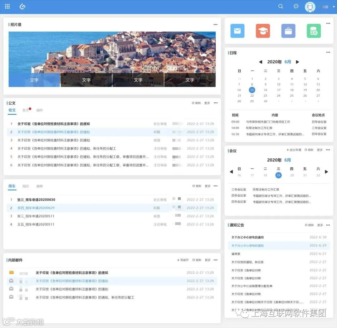 2、自定义门户模块更具人性化:UMIS智能协同平台门户可以根据个人工作内容与习惯自由配置,提高工作效率,优化工作环境。