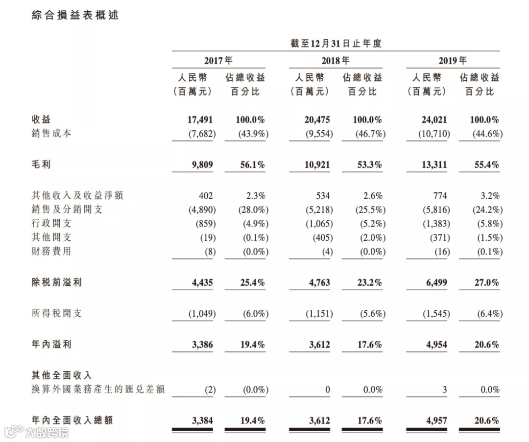 2017年至2018年及2018年至2019年,收益较上年分别增长17.1%及17.3%。根据弗若斯特沙利文报告,这一增速远高于同期中国软饮料行业5.0%及6.6%的增速以及全球软饮料行业2.7%及3.4%的增速。