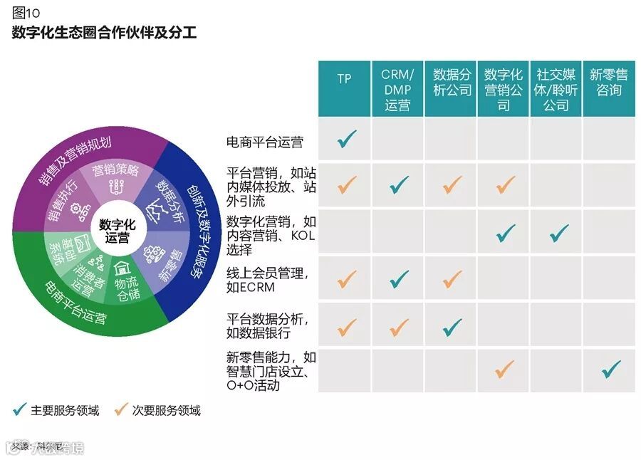 因此,在一些数字化的专业领域,如智慧门店的设立、数据获取整合和分析、数字化营销等方面,企业可以考虑借助专业的第三方。前文提到的其他一些领域,如社交聆听、内容营销、KOL选择等,也都有相应的第三方可供选择。