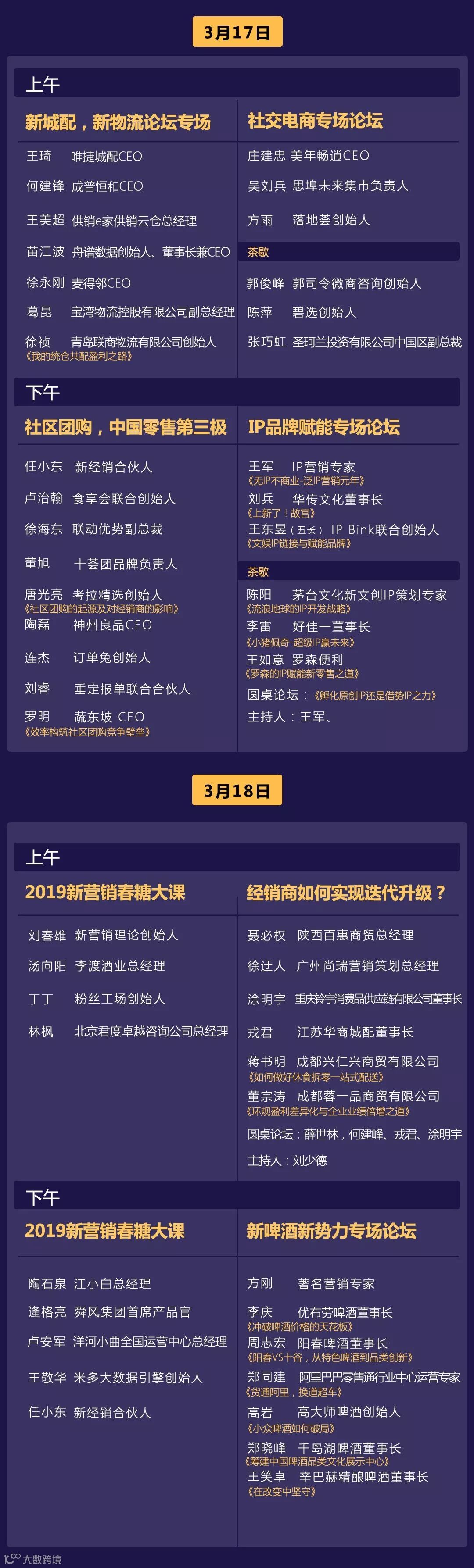 新经销将于3月15日-3月18日成都春季糖酒会期间召开2019年(第五届)快消品+互联网大会。本次会议,我们将围绕“破局”话题,与众多品牌商、供应链服务商、经销商、零售商等展开深入探讨。