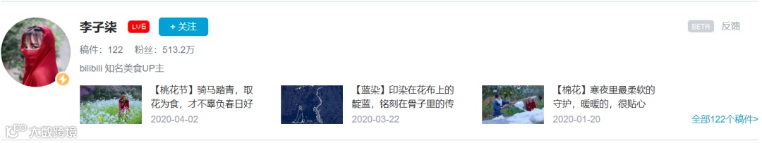 随着越来越多的生活区UP主突破百万粉丝,其收益也不再局限于B站的奖励。出圈带货的当属李子柒以及曼食慢语。