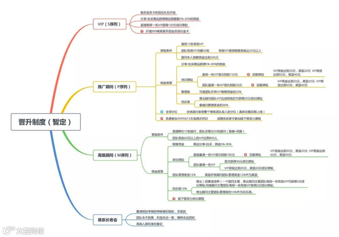 另外还有一份与小米签约的一家代理商的晋升和佣金制度,从这张表中可以看到规则非常清晰,普通VIP直接发展一名下线可以获得100元佣金。晋升到推广顾问后,直接发展一名VIP下线,可以获得150元,后期该VIP佣金达到20元,上线获得20元奖励;VIP佣金达到60元,上线获得40元奖励。间接发展一名VIP下线,也有50元的奖励。