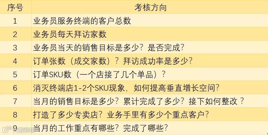 从农夫山泉基层业务人员的薪资构成即可明确得知,作为一个成熟企业,农夫山泉的大部分产品依靠强大的品牌力和产品力渗透到各个渠道、各个售点。产品对于消费者是主动需求,产品动销无需顾虑太多,需要做的是保证终端店不断货(当然并不是指生动化不重要),而需要业务人员做的是快速加大产品垂直增长空间,即单店的SKU数,确保多SKU销售,增强单店产出。那么这个时候销售基础工作就尤为重要。