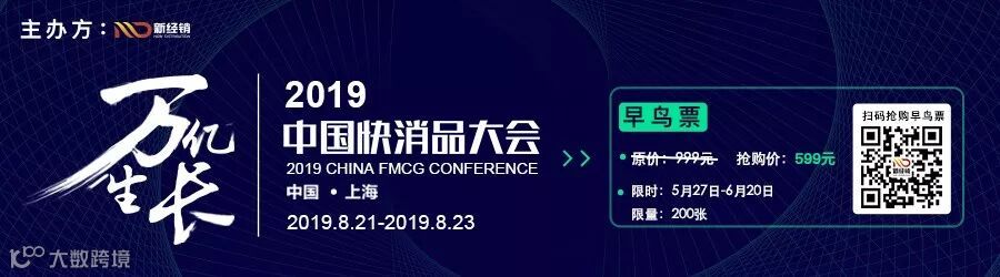 PS:新经销将于8月21日~23日在上海举办「2019·中国快消品大会」,本届大会以“万亿生长”为主题、“创新产品、创新渠道及创新营销”为话题,发掘新时代下支撑企业未来十年快速增长的新模式,新方法,新趋势。