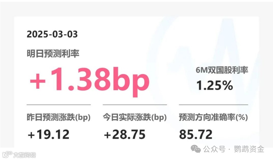 票据利率模型”预测6M双国股收盘利率下个交易日(3-4)上行↑+1.38bp