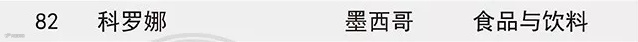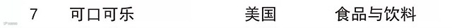 饮料行业表现亮眼的品牌有可口可乐、百事、雀巢,中国的茅台、五粮液青岛啤酒表现同样亮眼。