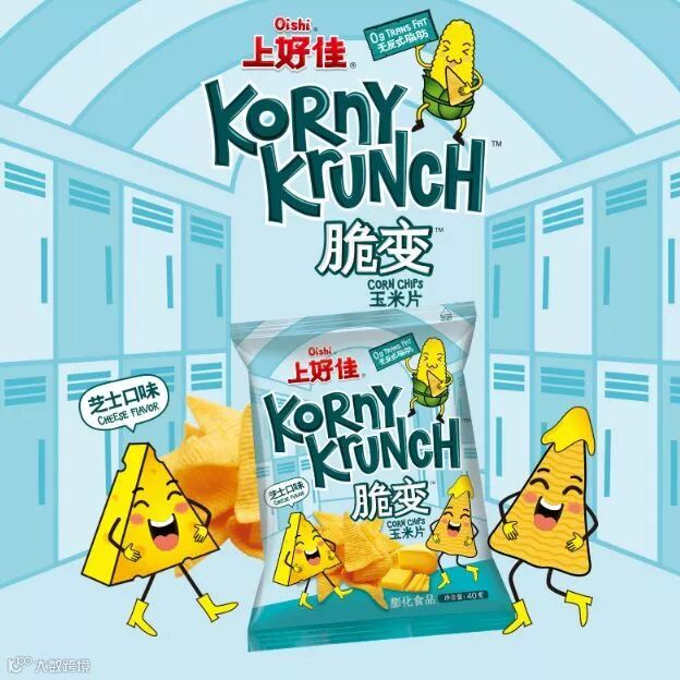 在2018年的年末,膨化品牌“上好佳”再次推出了一款“脆变”玉米片新品。这款产品的形状类似于妙脆角,在产品中添加了芝士粉,赋予玉米香浓的口感,产品不含反式脂肪酸成分,香脆可口。目前共有烤玉米、芝士、烧烤三种口味,在天猫旗舰店中售价约5元/袋。