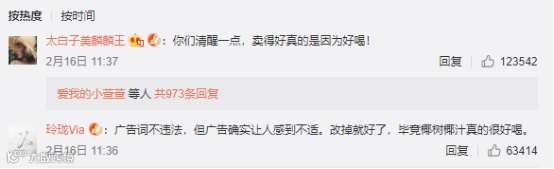 随着椰树最终的申明落地——“从小喝到大”的广告词不违反广告法。椰树的热点便暂告一段落,网络上各类争论的声音,几乎都是围绕这句广告词的双关语属性、椰树土掉渣的产品设计、以及对椰树口味的肯定……