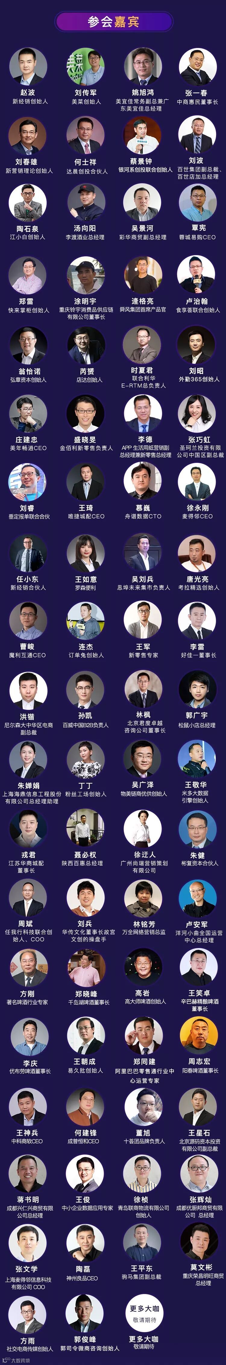 相较于往届会议,本次峰会将全面升级,除原有的渠道创新、城配物流、经销商转型等话题以外,还新增了新营销案例、IP+快消赋能、社区团购、创新零售等多场平行论坛,通过三天十场高密度高质量的专家分享交流,相信每个品牌商、经销商都能够学习到最新的商业模式,专家观点,落地的方法,为自身2019年破局找到新工具和方法,重回高速增长的轨道。