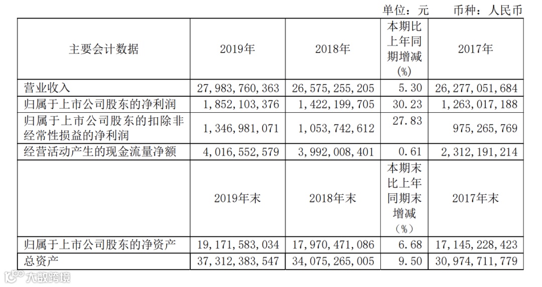 公司2019年全年实现营收279.8亿元,同比增长5.3%;净利润实现18.5亿元,同比大增30.2%。