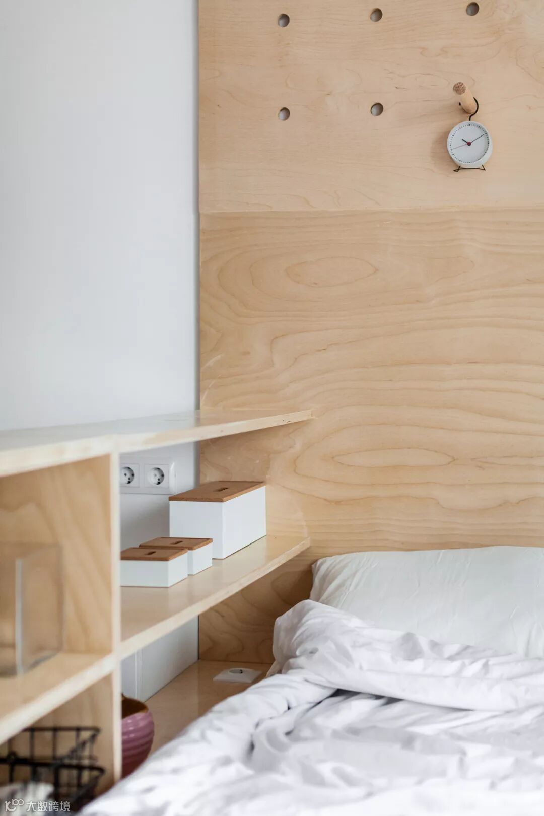 侧面柜格既是隔断也可做床头柜。