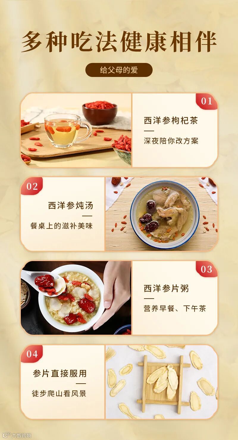 随着年龄的增长,身体机能逐渐下降,适量食用加拿大西洋参能够增强体质,提高免疫力。