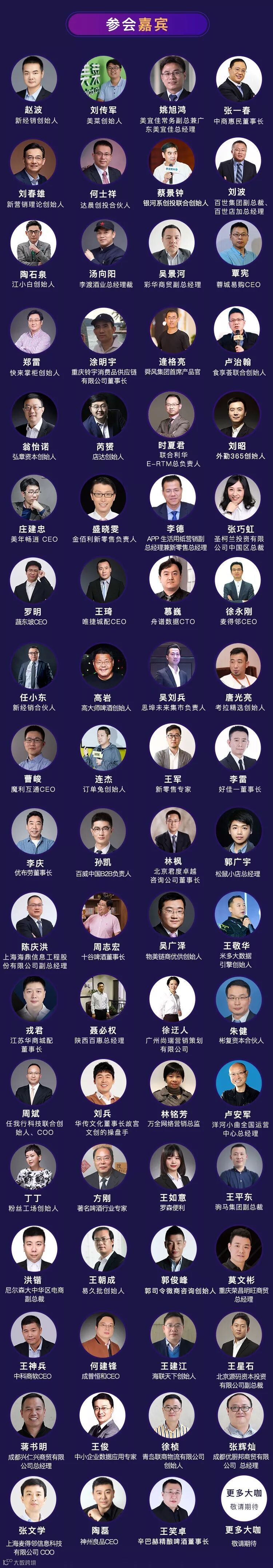 相较于往届会议,本次峰会将全面升级,除原有的渠道创新、城配物流、经销商转型等话题以外,还新增了新营销案例、IP+快消赋能、社区团购、创新零售等多场平行论坛,通过三天十场高密度高质量的专家分享交流,相信每个品牌商、经销商都能够学习到最新的商业模式,专家观点,落地的方法,为自身2019年破局找到新工具和方法,重回高速增长的轨道。