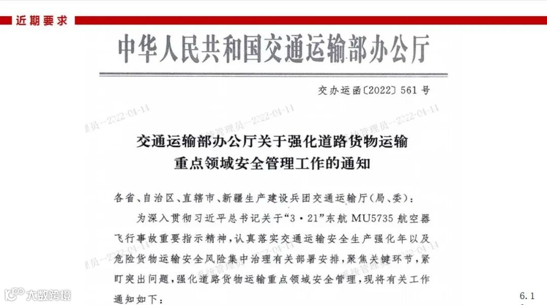 近期要求:关于强化道路货物运输重点领域安全管理工作的通知:
