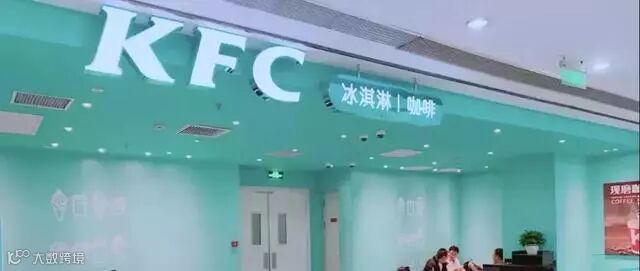 肯德基在北京的这家茶饮店位于东三环南路59号富力城的5层。一上楼梯大老远就能看到。这层楼里就属他最打眼。蓝色的点单台,蓝色的小椅子,蓝色的墙……与母店的风格完全不同,里里外外一色的tiffany蓝。
