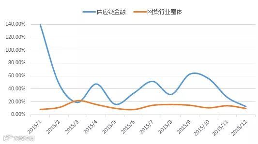 《2016互联网+供应链金融研究报告》提供数据显示2015年度,网贷行业供应链金融业务基本上远高于行业整体增速,新增投资人数也远高于行业水平,供应链金融发展势头非常强劲。