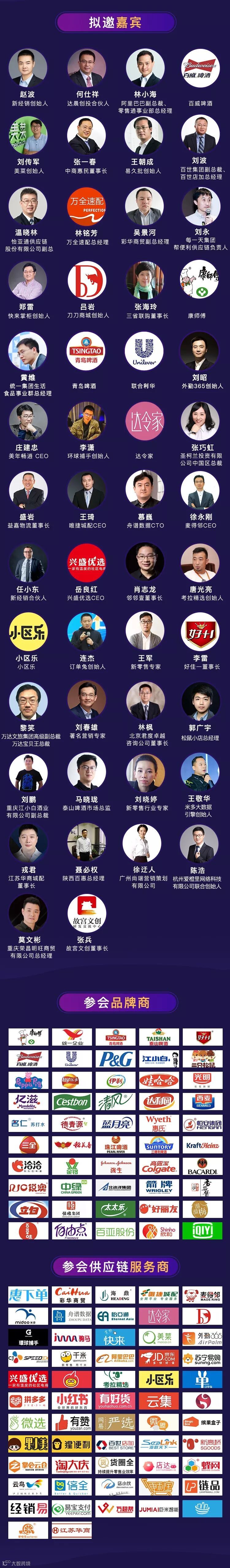 相较于往届会议,本次峰会将全面升级,除原有的渠道创新、城配物流、经销商转型等话题以外,还新增了新营销案例、IP+快消赋能、社区团购、创新零售等多场平行论坛,通过三天十场高密度高质量的专家分享交流,相信每个品牌商、经销商都能够学习到最新的商业模式,专家观点,落地的方法,为自身2019年破局找到新工具和方法,重回高速增长的轨道。