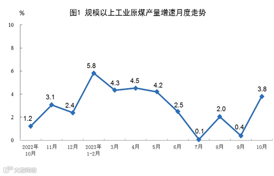 1-10月全国原煤产量38.3亿吨,同比增长3.1%