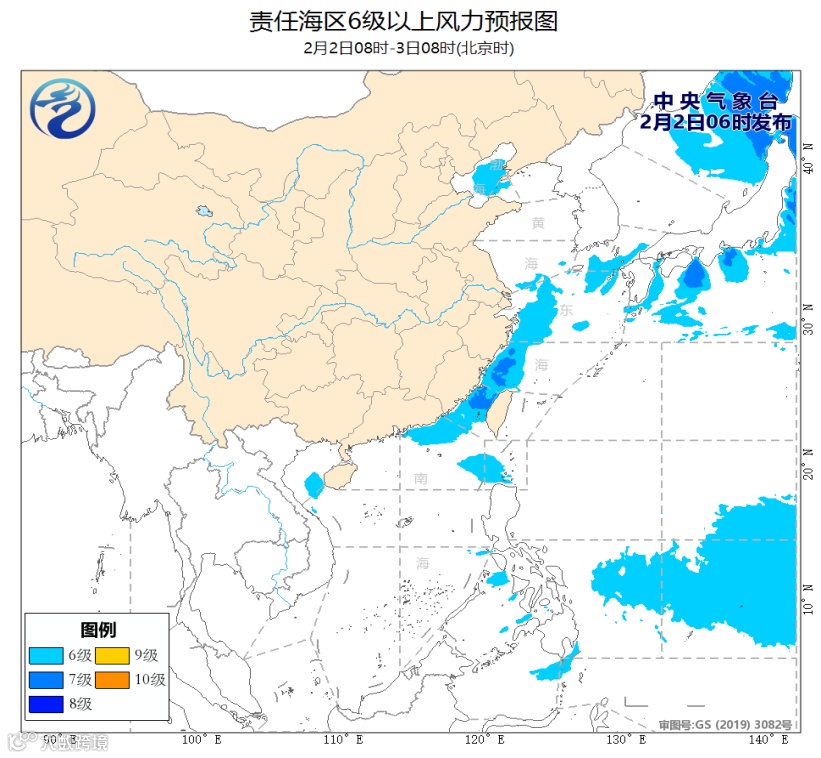 预计,2日白天至3日夜间,渤海、黄海南部海域、东海大部海域、台湾海峡、南海东北部海域将有5~7级、阵风8级的东北风。4日白天至夜间,受冷空气和入海气旋共同影响,黄海中部和南部海域、东海大部海域将有6~7级、阵风8级的旋转风,其中黄海南部部分海域、东海北部海域风力可达8级、阵风9级。
