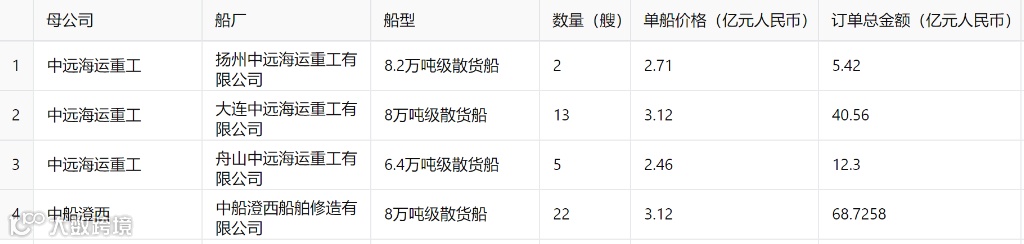 此次订单涉及的42艘散货船,其中20艘将由中远海运重工旗下的公司负责建造,另外22艘则由中船澄西船舶修造有限公司承建。这些船舶将分别包括5艘6.4万吨级、2艘8.2万吨级以及35艘8万吨级散货船(订单详细情况见下表),总订单金额超过人民币143亿元。值得注意的是,这42艘新船将全部长期租赁给中远海运散货运输有限公司(简称“中远海散”),这不仅有助于强化中远海发的船舶租赁业务,还将进一步巩固其在国内船舶租赁市场的领先地位。