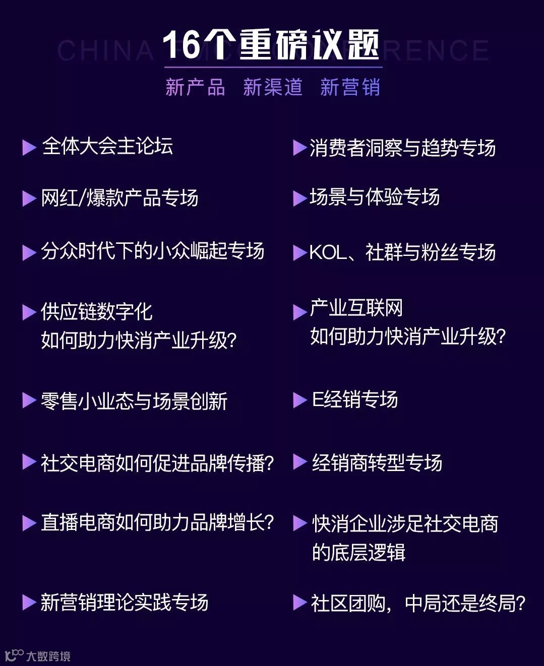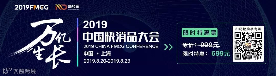 PS:2019年8月20日-23日,一年一度由新经销举办的快消品行业盛会「万亿生长·2019中国快消品大会」即将在上海震撼开启!100余位重量级分享嘉宾,4000+快消行业从业人员,16场重磅议题。本届大会以“万亿生长”为主题、“创新产品、创新渠道及创新营销”为话题,发掘新时代下支撑企业未来十年快速增长的新模式,新方法,新趋势。