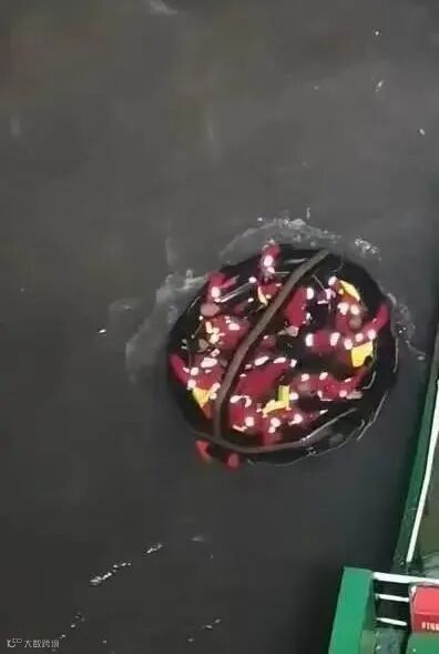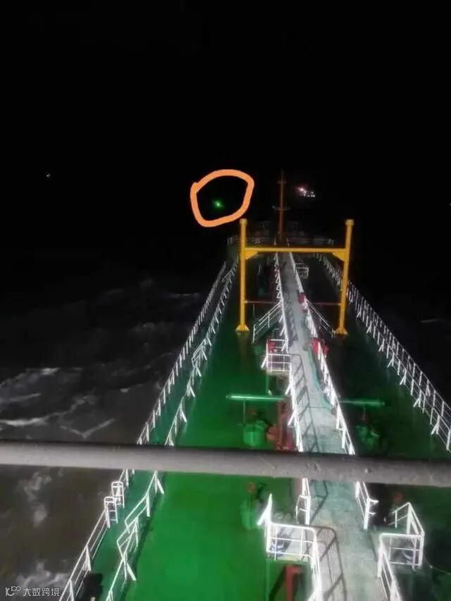 通过雷达扫描、探照灯搜寻,船员们终于发现飘在波浪中一艘救生筏的微弱灯光,船舶放慢速度逐渐向救生筏靠近。