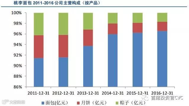从收入来看,公司销售产品主要以面包为主。面包产品的占比逐年升高,公司业务更加“纯粹”。截止到2016年年报,公司主营面包的收入已接近97%。公司面包产品拥有 3 大系列 30余个品种,其中 3 大系列包括软式面包、起酥面包、调理面包。