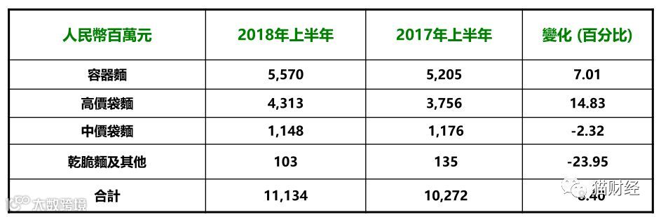 猫妹整理了2008年到2018年年中,康师傅控股与统一企业中国各期的营收与溢利表现。可以看出,两家公司的整体业绩表现与方便面业务的销售额变动趋势基本趋于一致。